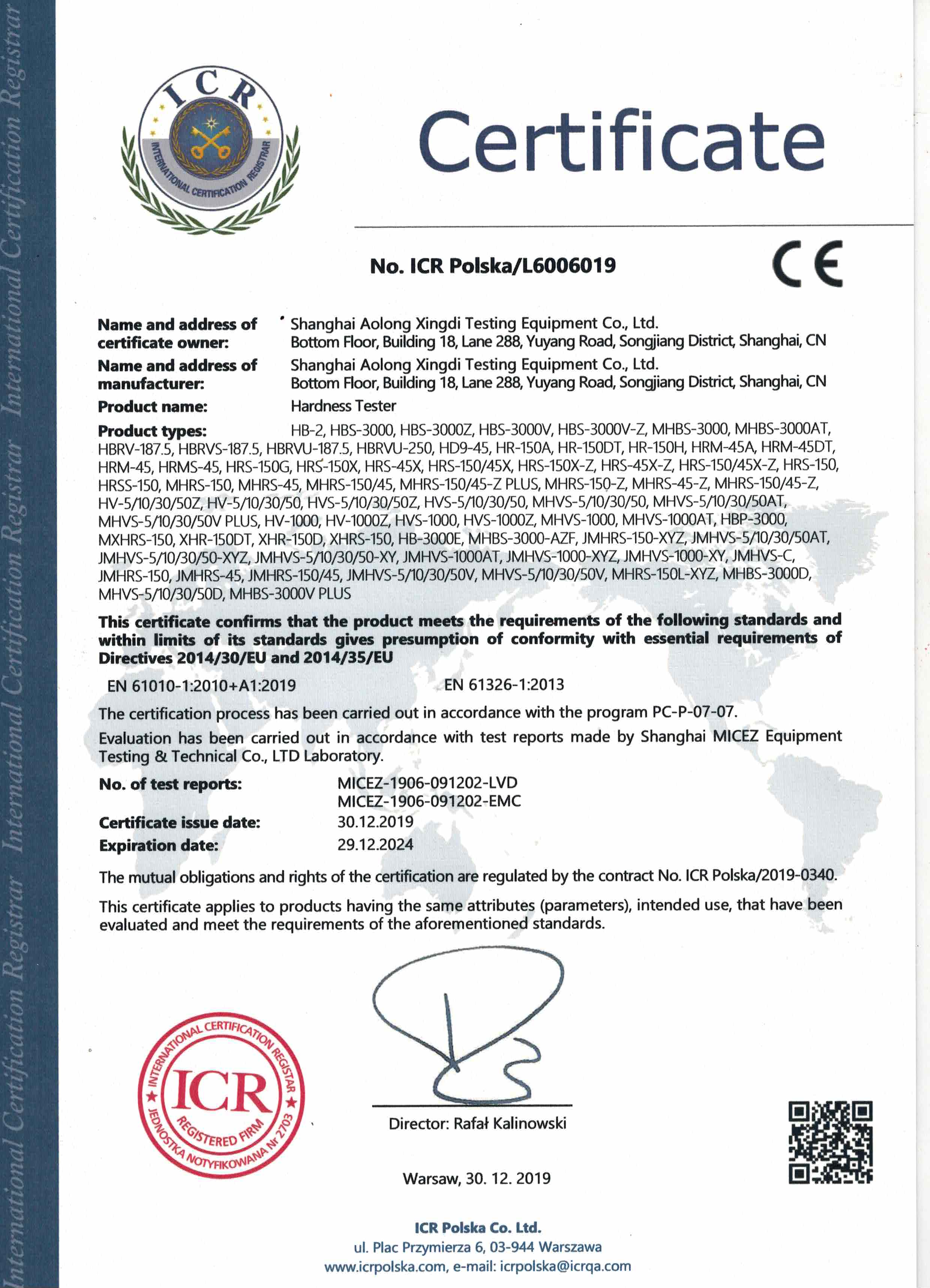 上海ky开元检测设备有限公司前身为(上海材料试验机厂,即“上材”) ,成立于1956年,是我国较早进行定点研发、生产硬度计的企业。公司已通过ISO9001质量体系认证,产品均获得欧盟CE认证。